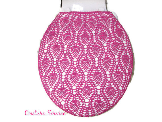 Handmade Crocheted Toilet Tank & Lid Cover, Hot Pink